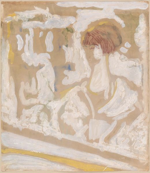 Curator: Here we have Pierre Bonnard's intimate oil painting, Bathing Woman, Seen from the Back, part of the Tate collection. Editor: It's incredibly soft. The muted blues and ochres create a haze, blurring the figure’s outline. Curator: Bonnard often depicted domestic scenes, elevating the everyday. His wife, Marthe, was a frequent subject, often shown in the bath. This image reveals a great deal about how gender roles were defined in the late 19th century. Editor: The composition is interesting. The towel, or perhaps a robe, competes for space, almost mirroring the woman’s form in its verticality. The light and shadow at play create a unique tension. Curator: Bonnard’s paintings were exhibited extensively in Europe, and they offer insight into the growing culture of modernism. He received criticism for his intimate portrayal of women, which was very common at the time. Editor: It really does ask you to consider how visual elements converge to convey complex emotions, and that's quite interesting. Curator: Yes, I think that Bonnard asks us to consider this tension, and also his contribution to impressionism. Editor: I see Bonnard's legacy as a dance between form and feeling.
