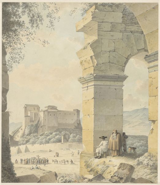 Daniël Dupré made this watercolor painting of the Arch of Titus in the Roman Forum. You can see how Dupré used the medium to capture the Arch's material. The watercolor paint is translucent. Dupré has diluted it to bring out a sense of light, air, and stone surface. The texture of the paper support also plays a role, helping to render the rough, weathered blocks of travertine and the eroded details of the Arch. Watercolors were often used for architectural studies during this period. Because the medium is relatively easy to transport and work with on-site, watercolor allowed artists to capture the qualities of light, space, and the built environment. Consider the social context as well: the Arch, a symbol of Roman imperial power, is now a ruin, being sketched by an artist who has traveled to Rome. It is a far cry from the labour involved in the original production of the arch, in the ancient city. The artist himself and his materials become the focus. This shift in emphasis helps us consider art in connection with craft.