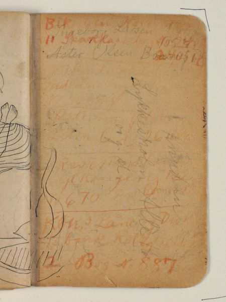 Curator: Let’s turn our attention now to Niels Larsen Stevns’ “Loose Sketches and Addresses,” a pencil drawing on paper created around 1906. What strikes you first about it? Editor: The immediacy. It feels like a direct glimpse into the artist’s mind, unfiltered and raw. The sketchbook quality and the combination of text and image offer such intimacy. Curator: Precisely. We’re looking at the material remnants of Stevns’ artistic process. Note the support: common squared paper. The artist isn't precious, which complicates that separation of craft and “high art" you see so often during this period. This isn’t about creating a pristine gallery piece, but about exploring the landscape and jotting down notes and addresses simultaneously. Editor: Absolutely, and I see the political and social context seeping through, too. He's recording data alongside his drawings: quantities, addresses... It all speaks to a world undergoing rapid industrialization and bureaucratization. Are these possibly commissions or landscapes containing social commentary? It prompts a question about the function of art in a changing world. Curator: Possibly. Or, as he moved through the world and found inspiration he captured those details in the same instance he captured logistical and navigational considerations. This would be typical for artists of his milieu who traveled by foot or coach and thus combined these practicalities into a singular object, something more integrated and sustainable than current day. Editor: I also think the sketches themselves evoke a sense of fleetingness. The boats hint at travel, trade, colonialism. Everything feels temporary and mobile which would influence Stevns's art whether intentional or subconscious. Curator: Good points. There is definitely that dialogue happening on this page, in microcosm. I see materiality, process, lived experience informing Stevns' creative choices and our viewing experience, today. Editor: Exactly. And for me, it becomes about acknowledging these sketches not just as beautiful or historically significant but as reflections of the dynamic historical moment which continue to resonate today, reminding us to consider art's positionality and accountability.