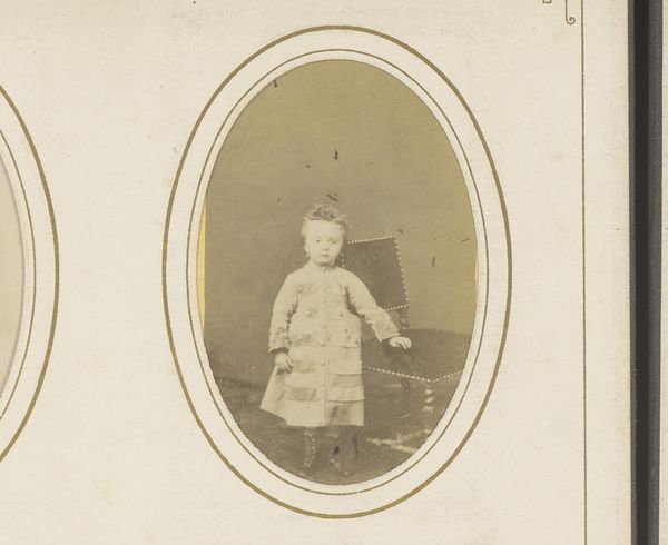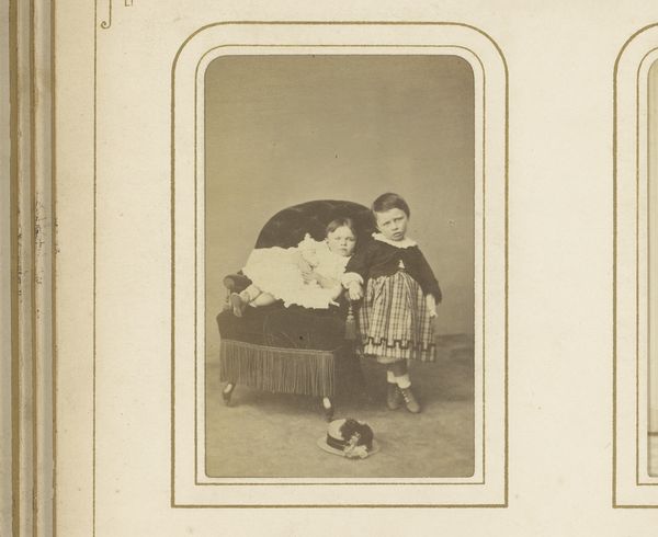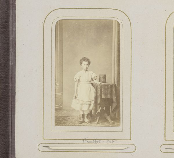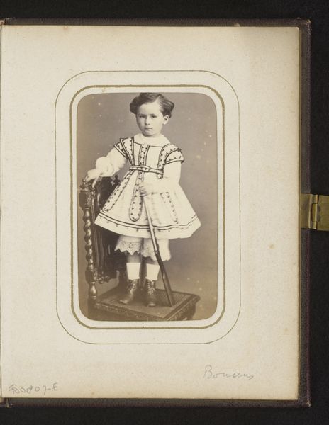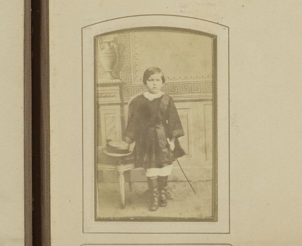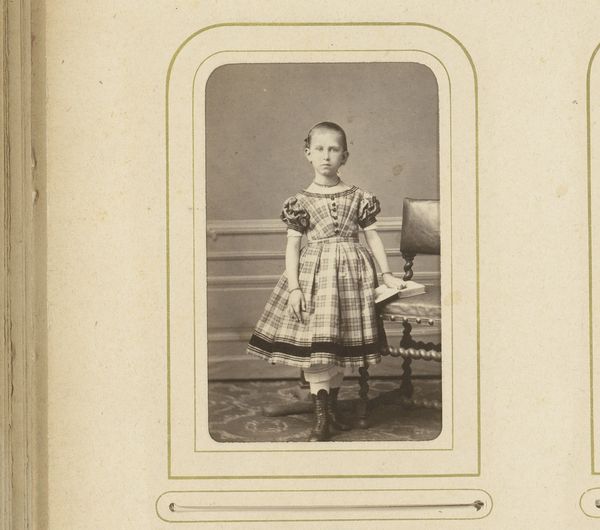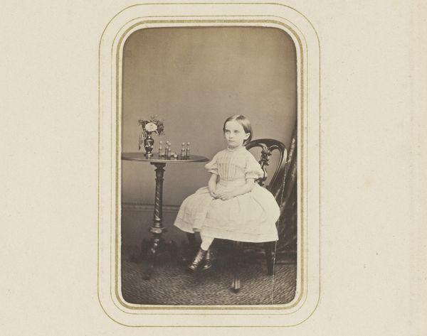 Hector de Saedeler captured this small photograph of a girl with a hat, in an unknown year, using the traditional methods of early photography. The image offers a glimpse into the rigid gender expectations of the era. Notice the child's somber expression, at odds with her dress which has a more playful pattern. The girl's posture suggests that childhood was to be seen and not heard. Is she performing an expected role? The hat, placed on the chair, introduces a performative element to the scene. This element perhaps challenges the traditional passive representation of girls. The girl's gaze, directed towards the viewer, creates a personal encounter. Does it invite us to question the nature of identity and representation, particularly of young women? Ultimately, this photograph provides a poignant look at the negotiation of identity within the confines of 19th century social norms.