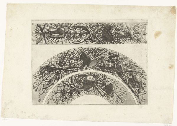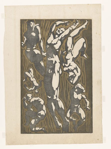 Gerrit Willem Dijsselhof made this design for a book cover using a woodblock print. Woodblock printing is a labor-intensive process where the artist carves an image into a block of wood; the remaining raised areas receive ink and create the print. Dijsselhof’s design features flying birds amidst swirling foliage. The stark contrast between the black ink and the white paper emphasizes the texture and intricate details achieved through the carving process. The repetitive pattern, reminiscent of wallpaper or textile design, shows Dijsselhof’s integration of decorative arts into fine art. The making process has imbued the artwork with cultural significance by connecting it to the broader Arts and Crafts movement, which emphasized handcraftsmanship as a counterpoint to industrial production. By choosing a manual technique like woodblock printing, Dijsselhof elevates the craft, making a statement about the value of skilled labor and traditional methods in a rapidly industrializing world. Appreciating the work means understanding the materials, the making, and the context.