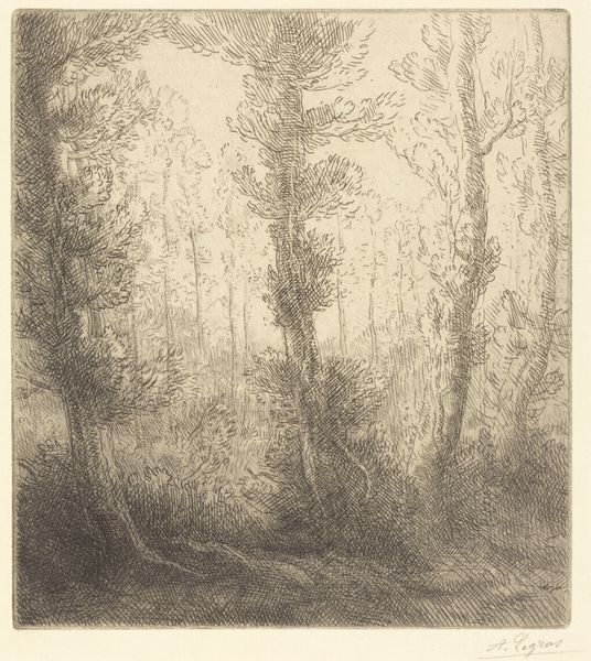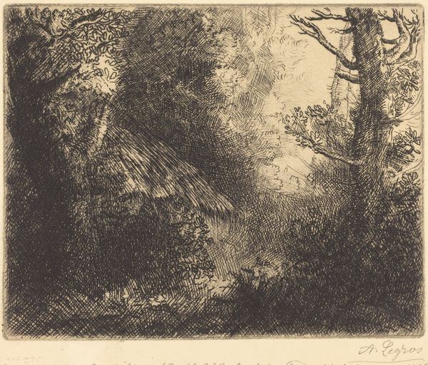 Alphonse Legros made this etching, "In the Forest", using a metal plate, acid, and ink. Etching is an indirect process, where the artist draws through a protective layer of wax to expose the metal. The plate is then submerged in acid, which bites into the exposed lines. The plate is then inked and printed, transferring the image to paper. Note the thousands of tiny, precise lines. Legros carefully controlled the depth and density of these lines to create areas of light and shadow. The way the ink sits on the paper gives the image its texture. The lines create a sense of depth and atmosphere, immersing us in this forest scene. Etching requires a high degree of technical skill. In Legros’s time, it was seen as a craft, distinct from painting or sculpture. But this beautiful print shows how such “humble” processes can achieve great artistic heights. By emphasizing the labor and skill involved, we can appreciate the true value of this work.