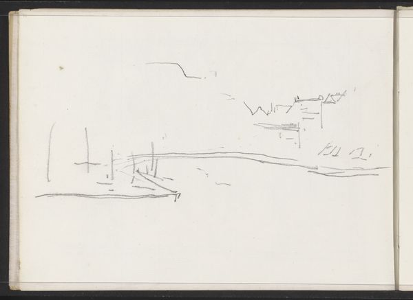Curator: Welcome. Let's delve into this evocative drawing by Max Beckmann, titled "Meereslandschaft, Farbangaben (Seascape with Notations) [p. 108]". Editor: My immediate impression is of restless energy. The composition feels transient, like a fleeting memory of the sea, captured with nervous, almost frantic lines. Curator: Indeed. It’s revealing as a page torn from what appears to be his personal sketchbook, offering an unvarnished glimpse into Beckmann’s process. You can see the notations, perhaps colour notes, interwoven with the sketched forms. Editor: The use of pencil and what seems to be pen work definitely hints at a direct, unmediated experience. The sea has always been imbued with a certain primal power in visual culture, often used to symbolize the subconscious or even chaos, and I see that echoed in the gestural style here. Curator: Absolutely. Consider how the abstraction both reveals and conceals. The drawing exists as a functional artifact for the artist—it’s where ideas are tested and refined, but still carries his unmistakable expressionistic bent, doesn't it? It challenges the conventional definition of 'finished' art. It really gives insight into the labor involved. Editor: You're right. Even those abstract shapes could be read as sea monsters or primordial creatures lurking beneath the surface, a recurring symbol for artists facing inner turmoil. And his Expressionist handling underscores an artist grappling with modern life's discontents. Curator: I'm struck by how he integrates those material annotations, those reminders to himself about hue and value. It disrupts a singular reading of the seascape. It acknowledges artmaking as a multi-faceted act. Editor: It's true. In his sea, the symbolic blends with the practical in the same breath, maybe gesturing to a unity of lived experience, in mind as much as labor? The symbols aren’t pristine, rather lived in and touched. Curator: Looking at Beckmann’s "Seascape", it's been insightful to see how materials and labour unite with psychological landscapes. Editor: Yes, definitely. And through this intimate sketch, we've touched on the many layers of symbolism embedded within such seemingly simple works.