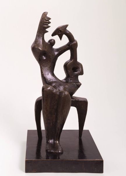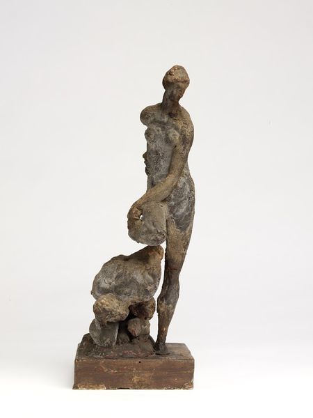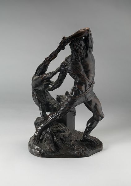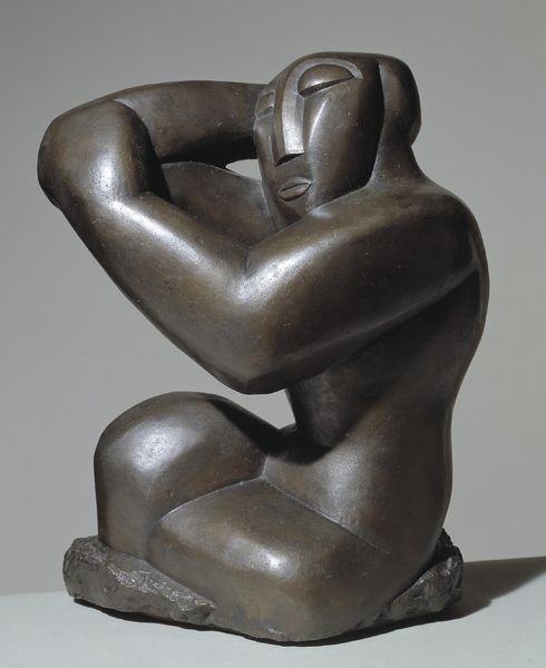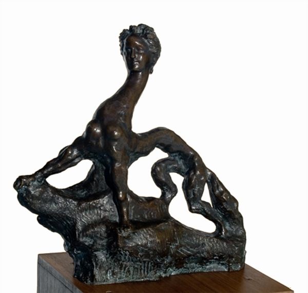 Editor: Here we have Charles Despiau’s “La Bacchante” from 1909, crafted in bronze. The sculpture has a captivating fluidity. I’m intrigued by how the artist plays with texture and form. What can you tell me about this work from your perspective? Curator: This bronze brings up compelling points about labor and artistic production. Think about the lost-wax casting method. It's a highly skilled craft, requiring collaboration between artist and foundry workers. How does this division of labor impact our understanding of artistic authorship? Does Despiau's concept translate successfully through the bronze medium and the physical labor needed to create the piece? Editor: That’s interesting. I never considered the labor aspect so directly. I was mostly focused on the smoothness of the figure versus the roughness of the base and support behind her. Curator: Exactly! Consider the contrasting textures: the refined surface of the Bacchante's body achieved through casting and finishing, juxtaposed against the deliberately rough texture of the base. What might Despiau be suggesting about the relationship between idealized beauty and the raw materials of the earth? And beyond bronze's earth-derived origins, what of its industrial role? Bronze was commonly used to cast arms. How can we relate its employment here to its use in expressions of power? Editor: So you’re saying the material itself carries meaning related to industry and societal roles, it's not just a neutral vehicle for the artist's vision. Curator: Precisely. Also, look at the choice of subject, the Bacchante, associated with wine, ecstasy, and female liberation. Consider that in relation to the socio-economic position of women as exploited figures. What’s Despiau’s place? And what does the sculpture say about our understanding of modern art’s marketability? Editor: I see, it's not just about the aesthetic or the myth. Thinking about the historical and industrial aspects gives me a totally different sense of it all. Curator: Indeed. By acknowledging materiality and its associated socio-historical processes, we're challenging traditional art historical narratives focusing solely on artistic genius and aesthetic value. Editor: This has really opened my eyes to analyzing art from a completely fresh viewpoint. Thanks for sharing your insight.
