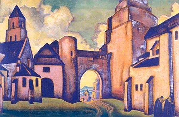 Mikalojus Konstantinas Ciurlionis made this striking image, called 'The Demon', using watercolour and tempera on paper. Look at those colours, the way he’s created an atmosphere that’s both brooding and beautiful. You can see the physicality of the medium, the watery washes, and the delicate layering of paint. There's a directness to the marks that lets you trace the process, feel his way of seeing. The dominant silhouette of the demon, poised in the foreground, is really interesting. See how it echoes the spiky shapes of the architecture? It’s as though the figure is another building, a part of the landscape itself, blurring the boundaries between the self and the world, the internal and external. The colour palette feels reminiscent of late Turner, but Ciurlionis's symbolic language is really his own. It's a reminder that art isn’t just about what we see, but how we feel and imagine.