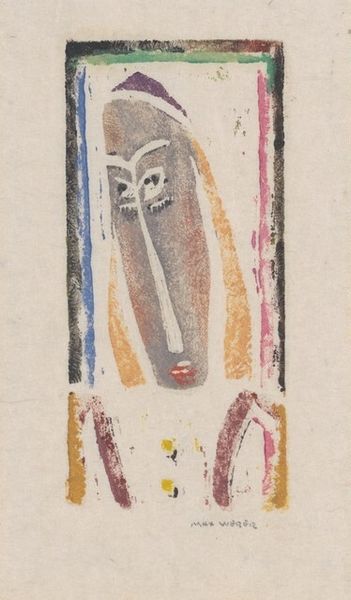 Editor: This is Max Weber’s “Standing Nude,” created sometime between 1919 and 1920. It's a woodcut print. The bold lines and simplified forms give it an interesting, almost raw quality. What can you tell me about this piece? Curator: I see a conscious emphasis on the labor involved in its production. The woodcut medium, with its deliberate carving and impression, makes the hand of the artist and the means of its production exceptionally evident, don't you agree? Editor: Yes, absolutely. It’s very tactile in a way. The lines definitely guide your eye, but also remind you of the physical effort to create it. How would the time in which it was made inform our understanding of it? Curator: Considering it was made between 1919 and 1920, amidst post-war realities, it’s crucial to acknowledge the potential anxieties and societal shifts. Was this piece perhaps also responding to industrialization? Weber seems less concerned with capturing a specific likeness, than with using the print to explore form. What do you think he’s doing here with the tradition of the nude? Editor: Perhaps using the form as a site of production rather than merely representing beauty? I'd have never considered it that way. Curator: Exactly. We have to look at how art, including something as seemingly timeless as a nude, participates in material processes and relates to contemporary life and modes of making. Editor: That’s fascinating, how looking at the materiality and means of production provides a way to connect art with the wider world! Curator: Indeed. By examining the material conditions surrounding its creation, we gain a deeper understanding of its cultural value and the role it plays within society.