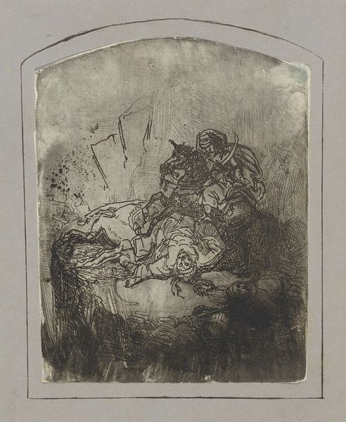 Oluf Hartmann made this tiny etching of the Sacrifice of Isaac at the beginning of the twentieth century. It’s all about the marks, which are rough and hurried, but so full of feeling. You can almost feel the artist’s hand trembling as he scratched into the plate. The texture is palpable. It feels like you could reach out and touch the grainy surface of the metal. The light is stark, creating deep shadows that emphasize the drama of the scene. Look at the way Hartmann uses line to define the figures. Each stroke is so deliberate, so expressive. In the father's face, you can see a mix of grief, and maybe even madness. The whole thing is unsettling. Hartmann reminds me of Edvard Munch, another Scandinavian artist who wasn't afraid to explore the darker sides of human experience. This is a powerful work that raises difficult questions about faith, sacrifice, and the human condition.