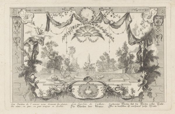 This print, titled 'Gardens of Bacchus', was made by an anonymous artist using the intricate technique of etching. Etching is a printmaking process that relies on the corrosive action of acid. A metal plate is coated with a waxy, acid-resistant substance, and the design is scratched into this coating, exposing the metal beneath. When the plate is immersed in acid, the exposed areas are eaten away, creating incised lines. Ink is then applied to these lines, and the plate is pressed onto paper to produce the print. The fineness of line achievable through etching allowed for detailed depiction of the Bacchus gardens. The print probably circulated widely, introducing its audience to the pleasures of aristocratic leisure. Though seemingly effortless, such images were dependent on the skilled labor of printmakers. Understanding its making helps us to appreciate the print’s artistry and its connection to wider social issues of labor, politics, and consumption.