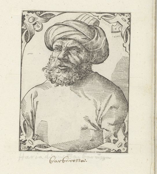 Curator: This is "Portret van sultan Qaitbay," an engraving dating back to sometime between 1549 and 1575, by an anonymous artist. Editor: He looks intense. A piercing gaze and rather austere, although the ornate turban suggests power. Curator: Precisely. This image encapsulates the complex dynamics between Europe and the Islamic world during the late medieval period. The portrait likely served a political function, presenting Qaitbay – a powerful Mamluk sultan of Egypt – to a European audience. Editor: How would you say it shaped public perception? Curator: It's crucial to understand the prevailing European views of Islamic rulers at the time. The meticulous detail given to the sultan’s garments and headdress signifies respect but, simultaneously, inscribes him within a framework of orientalist representation, perhaps framing his power in ways familiar, yet also foreign. Editor: Absolutely. The portrait highlights an "othering" aspect of representing someone from a different culture. What impact would these images have, filtering down through European society? Did they foster understanding, or reinforce existing prejudices? Curator: The distribution of such engravings through print culture suggests it was crucial in shaping knowledge – and therefore political positions. Visual imagery can function as both a mode of inquiry and a form of power. It highlights the nuances of early modern interactions between different cultures and belief systems. Editor: Considering its engagement in complex cross-cultural visual representation and power dynamics, this piece makes me consider just how deeply interwoven cultural understanding is within political context. Curator: Indeed. An interesting example of how artistic representation could create a discourse about social and political dynamics of an entire era.