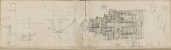 Editor: This is Johannes Bosboom's "Zuilengalerij in een kerk," or "Colonnade in a Church," made sometime between 1827 and 1891. It’s a pencil drawing on paper, currently held at the Rijksmuseum. I'm struck by the almost mathematical quality of the lines, but also how unfinished it feels. What stands out to you? Curator: What immediately grabs me is the intersection of the sacred space, rendered through these precise lines, with the implied human presence – the artist observing, documenting. It raises questions about power dynamics. Who has access to these spaces? What stories do these columns conceal? Editor: Power dynamics... that’s interesting. I was mostly just thinking about the architecture itself. Curator: But architecture is never neutral, is it? These columns, this church, were built within specific social, political, and economic contexts. Think about who funded it, who worshipped there, and who was excluded. These buildings often reinforced existing hierarchies. What do you make of the unfinished nature, then? Is it simply a sketch, or could it represent something more, such as the imperfection and vulnerability of religious institutions themselves? Editor: I see what you mean. Maybe the incompleteness suggests the church is constantly evolving, changing with the times? Curator: Exactly! Or, perhaps it acknowledges that no institution can ever fully achieve its stated ideals. And the lines, while precise, are still drawn by a hand, subject to human error and interpretation. Where do we see human imperfections reflected in idealized institutions today? Editor: Thinking about it that way… changes my perspective completely. I came in looking at lines, but I’m leaving with questions about societal structures. Curator: That’s the beauty of engaging with art, isn’t it? It encourages us to critically examine the world around us.