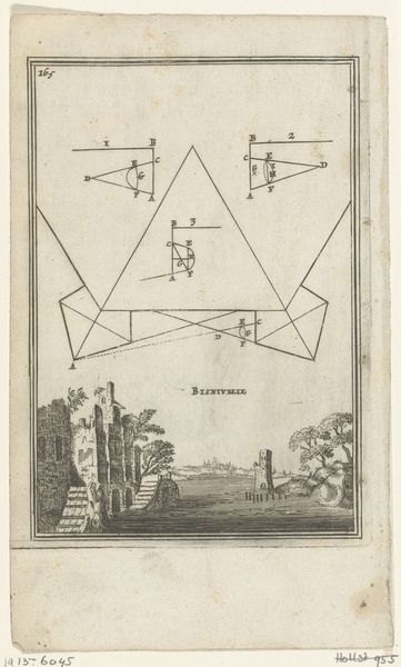 Romeyn de Hooghe made this illustration for Allain Manesson Mallet’s ‘Den Arbeid van Mars’, sometime around the late 17th century. It combines geometry with warfare. The diagram at the top, a ‘Demonstration of the Hexagon Errard,’ shows abstract mathematical principles, while below, we see a landscape with troops engaged in battle before a fortified town. This combination reflects the period’s fascination with applying scientific thinking to military strategy. The use of geometry to plan fortifications or troop movements was becoming increasingly important. De Hooghe, working in the Dutch Republic, engaged critically with the political events of his time. His prints often depicted military and political events, sometimes serving as propaganda. To fully understand this image, one could consult military treatises of the time and study De Hooghe’s other works. The illustration shows how art is deeply embedded in its social and institutional context.