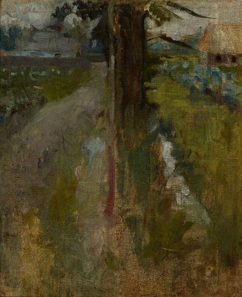Curator: Here we have Edvard Munch's "Night in Saint-Cloud" from 1890, an oil painting characterized by its use of impasto. Editor: Immediately, I'm struck by how intensely blue this interior is, almost oppressive. It’s the kind of blue that feels like holding your breath. Curator: That blue, for Munch, signifies much more than just a color; it's about conveying emotional intensity. You have to consider his state of mind at the time – personal turmoil, anxieties – that seeped into his creative process and materialized into his unique visual language. Editor: Yes! I feel the weight of the quiet desperation just radiating from the scene! It looks like a room haunted by an unspeakable melancholy. The shadowy furniture, the streetlight beaming in...it's a stark contrast, the exterior world pushing against the interior gloom. Curator: Precisely. The window serves as this dividing point – inside, isolation; outside, the faint pulse of city life. I am intrigued with Munch’s impasto use; that rough texture heightens that sense of unease, that something is unfinished or unresolved. We're meant to feel the weight of this scene. The act of painting is clearly as important as what is represented. Editor: Definitely unfinished, in the best way possible, emotionally! Almost as though Munch isn’t simply painting a room but capturing a fleeting emotion he wasn’t quite able to hold on to, as it seeped into the scene’s material existence on the canvas. Curator: And that emotional quality is rooted in specific material choices and processes. The painting becomes a record of that emotional labor, both his, and, potentially, ours. It's not merely a pretty picture, but an exploration of production, and of the self. Editor: Exactly. It’s amazing how a simple scene becomes so heavy with unspoken feeling. It resonates long after you look away. Curator: Absolutely, it provides us much to contemplate in its subdued presentation. Editor: Well said! This one got under my skin and stayed there.