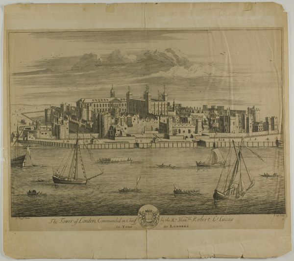Curator: Look at this intricate pen and ink drawing, "Aventijn langs de Tiber te Rome," dating back to 1575, created by Étienne Dupérac. The cityscape just bristles with detail. Editor: It's incredibly detailed. The stark black and white and the artist’s fine pen strokes create an almost ethereal quality, despite the somewhat pedestrian scene of boats on a river. Curator: The Aventine Hill carries enormous symbolic weight in Roman history, both in pagan times and as it became integrated into Christian Rome. Editor: The repetition of architectural forms, arches, and the positioning of that cluster of trees – it gives the entire composition a rhythm, a sense of stability…almost defiance, considering the ruinous state of some of the buildings. The water, with the ships sailing toward us, feels like a hopeful gesture. What do you make of the almost obsessive detail? Curator: Dupérac was working during a period of massive rebuilding in Rome under the popes. This kind of representation serves almost as an inventory of existing structures, both documenting the current state of affairs and imagining possible future urban landscapes. He also spent a good bit of time developing reconstruction proposals of ancient Roman structures; so it also functions as a document about how people thought about time. Editor: It becomes more than a literal depiction, then. It evokes the concept of layering – both literal and figurative – the present built upon the past, but also dreams for the future influencing that architectural language. What about the religious iconography or political statement the work transmits? Curator: The lack of explicitly religious or political symbols is significant here. While religious institutions heavily shaped Rome, their dominance is surprisingly subtle. The hill, itself, would call to mind notions of refuge, foundation and of civic virtue. Editor: In looking closely at Dupérac's work, it feels like viewing not just a cityscape but also the visual representation of a living palimpsest, a continuing symbolic project as humans and cities endlessly rebuild. Curator: Absolutely. Dupérac allows us a glimpse into how the city functioned as a historical object. The symbolic import that the place and space commanded during its time still has value for the study of Rome.