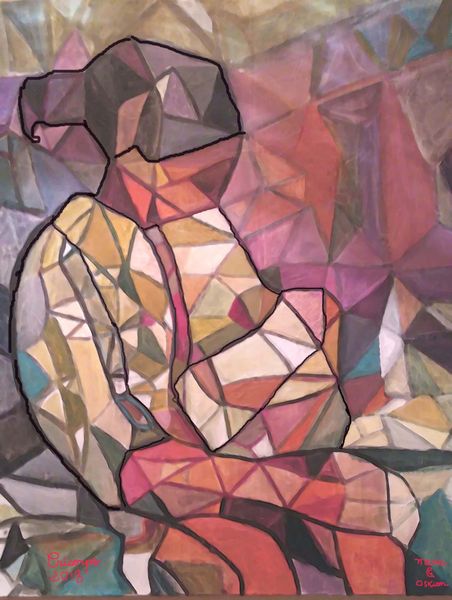 Curator: Looking at this explosion of color, I am reminded of stained glass shattered and reformed. The angularity is so striking. Editor: I agree. Cricorps' "EXODUS," painted in 2018, vibrates with energetic hues. Acrylic paint forms an intricate mosaic, almost defying definition. I see an engagement with form. But let's think about why an artist working today would title this piece EXODUS. What might it mean within their current context? Curator: I notice the paint application is quite textured in some areas, revealing the process and materiality. We know that Cricorps often repurposes leftover construction materials. Could these be paint remnants from larger projects, symbolic perhaps of displaced building and creative energy? The fractured forms certainly lend themselves to ideas of displacement and forced departure inherent in the word 'exodus'. Editor: It's a compelling argument, grounding the aesthetic in the tangible realities of the artist's labor. I am particularly struck by how the formal tension arises between the mosaic-like division of space and its emotional intensity. The interplay of red and yellow dominates the central space which feels restless despite the confinement to clear geometric shapes. Curator: And isn’t that confinement telling? The artist's manipulation of this medium is intriguing. Consider, too, how neo-expressionism allows for exploration of abstract form alongside complex psychological, even sociopolitical content. What looks purely abstract soon begins to reflect the external world and personal struggle. Editor: Absolutely. And in terms of abstraction, I wonder about the absence of distinct figurative elements despite that almost implied presence of such things. Do we need to look at formal language itself—the syntax of line and color—to perceive the real thematic content of struggle. Curator: Thinking of audience reception in that light makes this piece resonate differently than, say, the early twentieth century use of abstraction. The layered processes and sourcing—material remnants, cultural touchstones in the title—weave complex threads connecting "EXODUS" to tangible, modern realities of our world. Editor: That approach certainly unlocks a layer of richness I initially overlooked. Viewing "EXODUS" strictly through color and composition made me feel it had emotional potential, but considering the material realities takes the artwork somewhere even more potent and complex.