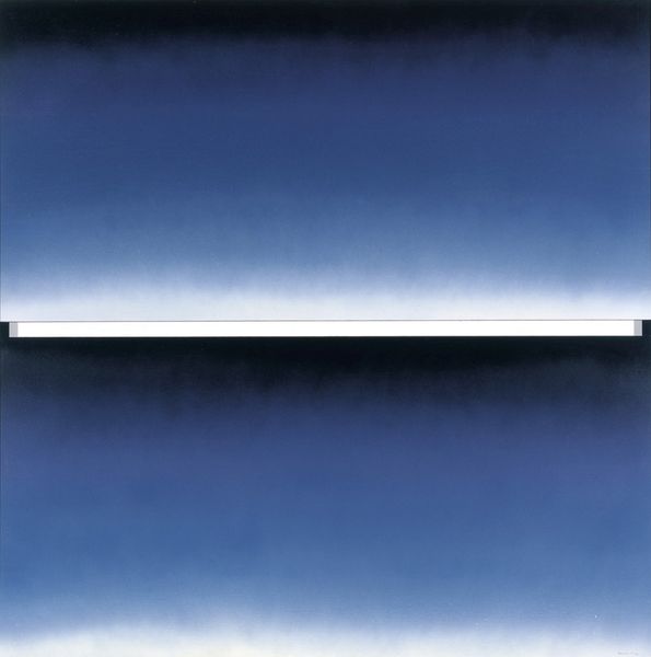 Curator: Welcome! Today, we’re considering "Horizon II" by John Miller, an acrylic on canvas piece evoking abstract expressionism. What's your initial reaction? Editor: I'm immediately struck by the flatness of the paint and that distinct horizon line; it's simultaneously calming and unsettling. It feels a little bit like looking at a Rothko through Instagram’s limited color palettes. Curator: The application is clearly important here. The materials declare themselves boldly. Look at the layers and the horizontality. Miller's choices in using acrylic paint result in an extraordinary evenness, rejecting overt expressiveness, which we usually see in abstract expressionism. It pushes back against the fetishization of the artist's touch, shifting our focus towards the material itself and perhaps its very manufactured-ness. Editor: Right, and that choice feels so relevant! We have this digital effect through analog means. And the subject matter - the horizon - this space in between here and there… who gets to experience that? Whose horizons are limited? I wonder how issues of geographical and social boundaries shaped this work and John Miller’s understanding of place. Curator: That's interesting to consider in terms of physical space and social strata, yes. But also note the labor of the layering. Each level builds upon the previous, showing that process matters, whether or not we can ‘see’ the work involved at first glance. This painting’s repetitive action, and its implied time spent layering color, becomes the labor the artist seems to examine as well as perform. Editor: Yes! The subtle graduations! This invites us to see this painting not as a finished object, but the material act of repetitive construction – of slowly making. If we also connect it to debates about industrialization at the time of production – is this supposed ‘sunset’ natural, or synthetic? Are we looking at an allegory for progress, and who profits? Curator: Very compelling questions! This really exemplifies color field painting by eliminating the idea of gestural brushstrokes. There’s also an interplay of line, but line expressed in color—which calls our attention to production rather than a singular creative ego. Editor: Absolutely. By eliminating overt gestures, Miller opens up a dialogue around perception and experience in late capitalism, which is no doubt as complex as the number of acrylic paint layers on this canvas. Curator: Precisely. It becomes a testament to both the potentials and limitations of material expression. Editor: Thank you for guiding us to experience and explore "Horizon II" on deeper levels. It certainly gives food for thought.