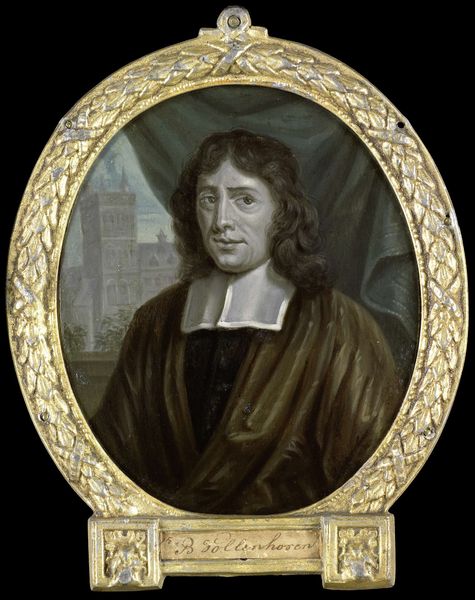 Arnoud van Halen captured Johan van Nijenborgh in this intimate portrait. Enclosed within a gilded frame adorned with laurel leaves, symbols of victory and honor, Nijenborgh gazes out. The laurel, a classical motif, reappears throughout art history. From ancient Greek wreaths bestowed upon triumphant athletes to Renaissance paintings crowning poets and heroes, it speaks of achievement. Yet, its presence here carries a more nuanced weight. The laurel's cyclical journey through time reveals a shifting understanding of heroism; in Nijenborgh's era, it signifies not martial prowess, but intellectual and artistic accomplishment. Consider the subtle psychological impact of the laurel. Its association with glory taps into our collective desire for recognition, a deep-seated human drive. This desire transcends time, connecting us to the past through shared symbols of ambition and remembrance. The portrait invites us to contemplate our own aspirations, reminding us of the enduring human quest for lasting recognition.