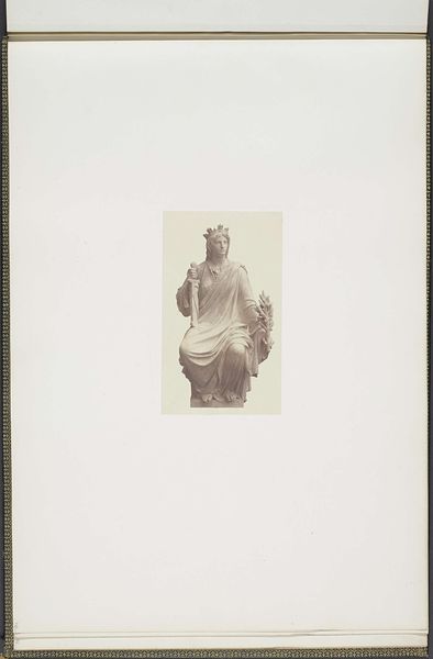 Editor: Here we have a photograph by Edouard Baldus of Antoine-Louis Barye's plaster model for a sculpture called "L'Ordre", dating from around 1855-1857. I’m struck by the contrast between the rough texture of the plaster model and the smooth surface of the photographic print. How does that interplay influence your reading of the artwork? Curator: The textural contrast certainly grabs our attention. However, as a Formalist, I am primarily interested in the internal dynamics of the composition. Observe how Barye’s arrangement – the strong vertical of the sword played against the curves of the figures creates an aesthetic balance. Note also that Barye masterfully deploys the principles of Classical sculpture by positioning each part of the body in opposition to the one next to it – weight on one leg, turn of the head to balance the swing of an arm. Do you see that creating visual harmony? Editor: I see that now. The opposition of the figures makes it visually satisfying. Is there anything else in the composition you think is noteworthy? Curator: Absolutely. We need to focus on Barye's ability to merge Realist, contemporary subject matter with Neoclassical structure. How are those muscular figures posed, arranged and illuminated to create something almost diagrammatic in the way they show ‘order’? The photograph emphasizes the lines and shadows, underscoring the solid geometry on which the figures are created. The play of light is key here; the light, especially as captured through the photographic process itself, is very revealing of form, line and three-dimensional volume. Editor: That’s fascinating. I had focused so much on the texture of the plaster. Now I really see how the formal aspects create the idea of "Order". Curator: Exactly! We observe the success of the image when those lines, surfaces, shapes and the arrangements communicate a central, almost mathematical aesthetic logic in and of themselves. Editor: That’s really helped me understand the power of visual composition and how to look past the obvious. Thanks for sharing your insight!