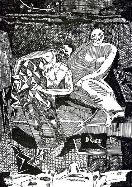 Editor: Sue Coe's graphic drawing, "Suicide", utilizes ink to create a stark and haunting image. Its monochromatic palette and explicit subject matter evoke a feeling of despair. There's a clear narrative unfolding, or rather unraveling, on the page. What commentary do you think Coe intended with this unsettling work? Curator: Coe's work consistently addresses power structures and their brutal impact on vulnerable populations. Seeing "Suicide" within her broader oeuvre, it's less about individual despair, and more about the structural violence perpetuated by economic and political systems. Look at the figure with "Hands Off the Trade Unions"—what do you make of the inclusion of this printed statement within this nightmarish setting? Editor: Well, the sign makes me think about labor rights and how the stripping away of protections can literally lead to people losing hope. But the almost surreal depictions…it seems like it’s amped up and making an overt political statement. Curator: Exactly. And consider the context of Coe’s work in relation to the rise of neoliberal policies. What role do artists play in visualizing the human cost of those policies, the austerity measures? How are viewers complicit? She makes us question institutions that normalize and uphold such conditions and policies, using powerful imagery and drawing us into the frame of moral responsibility. It serves as a harrowing reminder of who are those impacted the most from such power and authority, such as, trade and laborer positions. Editor: I hadn't really thought about the bigger socio-political picture as much, but now I see how Coe is implicating institutions and policies. Curator: That intersection is vital. Visual imagery often reflects historical and governmental occurrences, in this instance, challenging authority figures that take advantage of lower populations and those impacted within a work context. Hopefully you consider further the complex role that art can and does play in these broader social contexts. Editor: This perspective provides more historical lens for my understanding of graphic artwork pieces in general, now I have a further insight. Thanks.