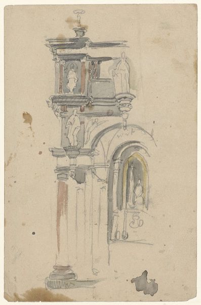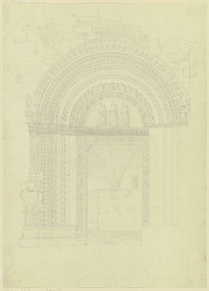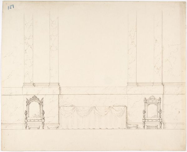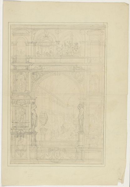 Editor: So, here we have Friedrich Maximilian Hessemer’s "Richly Decorated Courtyard of a Residential Building with Loggia," made with pencil on paper in 1829. It feels unfinished, like a blueprint. What can you tell me about it? Curator: I see a clear demonstration of architectural design. Note the labor that would have gone into executing these ornate details in stone. Each line in this drawing anticipates a worker's hand. Consider the economic structures that support such elaborate displays of domesticity, even the clothes hanging out to dry signify labor, production, trade, and ultimately, consumption. What can we infer about the class and resources of those living here based on the materiality of the building and its adornments? Editor: That’s interesting. I was only looking at it formally. You’re making me think about who built this, who lived there, and how the materials came together. Does the style inform that as well? The Neoclassical elements? Curator: Precisely. The adoption of Neoclassical motifs speaks to an aspiration toward order, reason, and perhaps a connection to a perceived glorious past. But that aspiration has to manifest in physical materials, requiring quarries, transportation networks, and skilled artisans. Consider the drawing itself; pencil on paper. What does that choice of materials suggest about its purpose, its accessibility, and its intended audience? Is it a luxury item, or a readily reproducible plan? Editor: I see it now; every aspect relates to resources and labor. I never thought about Neoclassicism in terms of materials and manufacturing before. Curator: Art doesn't exist in a vacuum. Exploring its materiality roots us in the concrete conditions of its making and use. Consider the act of drawing itself, the skill of the draughtsman—a type of labor often overlooked when we admire the final design. Editor: It makes me wonder how many other "fine art" works are connected to industrial production in ways I haven't considered. Curator: Exactly! It prompts us to think critically about value—not just artistic, but economic and social value as well. A new way of appreciation.