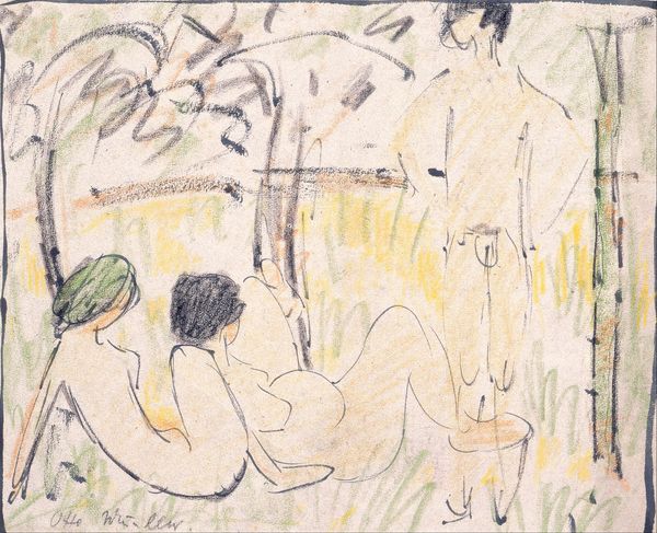 Ernst Ludwig Kirchner made this pastel drawing of bathers, Badende, on paper, and it feels like he was working quickly to capture a moment, a mood. The colors are muted, earthy, but with these surprising pops of blue and orange that keep your eye moving, like a visual dance. I love how he uses these thick, dark lines to define the figures, but also to create these abstract shapes that feel almost like a landscape of their own. Look at how the pastel is layered, almost scrubbed into the paper in places, and then left as a light scumble in others, it's a real lesson in how much you can do with a limited palette. In the bottom left, there is a figure, drawn simply, yet full of tension. Kirchner makes you feel the weight of the body, the way the light catches the skin. Artists like Matisse explored similar territory, that tension between representation and abstraction, but Kirchner’s got this raw, almost desperate energy that's all his own. He reminds us that art is always a conversation.