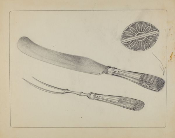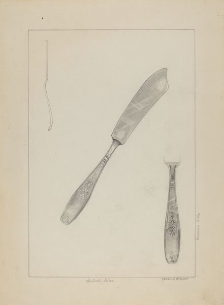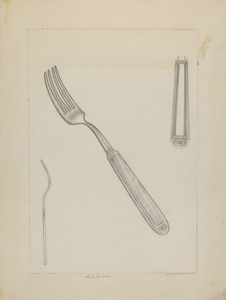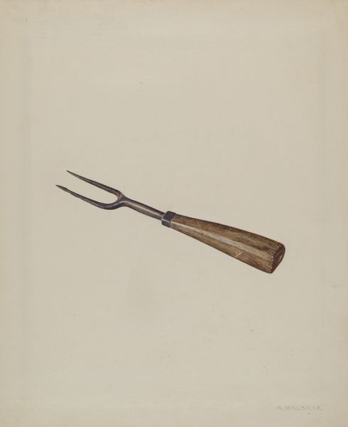 Fred Hassebrock made this drawing of a steel fork on paper, the date is unknown. What strikes me is how a common utensil becomes something worth contemplating through art. Hassebrock’s careful application of watercolor creates a smooth, almost polished surface. It’s like he’s inviting us to really consider this object, to see the beauty in the everyday. Look at the handle, the way he captures the wood grain with subtle variations of brown and the tiny dots of the rivets. There's a quiet intensity. The way the tines curve is subtly organic. There’s something very humble and direct about this piece, but it also reminds me of the precision and care that someone like Agnes Martin brought to her work. It’s not just a fork, it’s an exploration of form, line, and the simple beauty of functional objects.