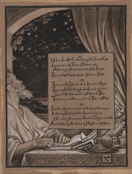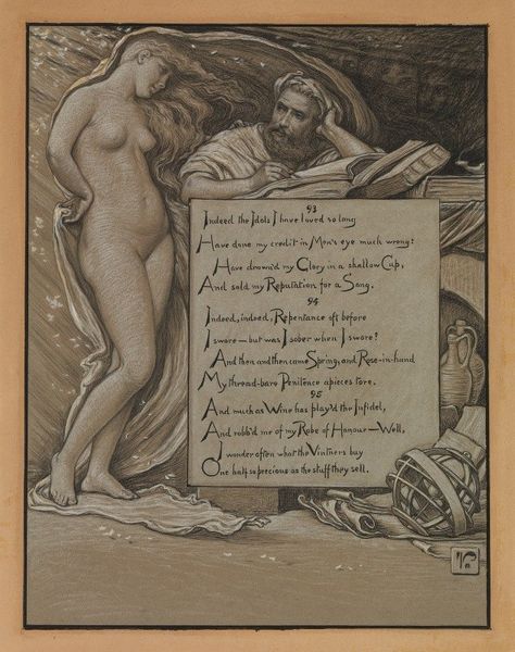 Elihu Vedder made this illustration around the turn of the 20th century, using graphite and ink wash on paper. He favored these media, which allowed him to achieve a subtle range of tones and textures. Look closely, and you can see how the materiality of Vedder's choices deeply influences the image’s meaning. He built up shadows with multiple layers of graphite, creating a dreamy, atmospheric effect that heightens the image’s poetic mood. The texture of the paper itself contributes to the work's soft focus. This choice of relatively humble materials underscores the image’s central theme: the fleeting nature of life and the echo of past voices. Vedder wasn’t only a painter. He was also an illustrator, a designer, and a sculptor. As this work shows, he moved freely among these fields, challenging any strict separation of fine art from craft. His willingness to engage with illustration reflects his belief that art should be accessible and meaningful to a wider audience. Vedder was interested in more than simply aesthetics; he was invested in the social role of art.