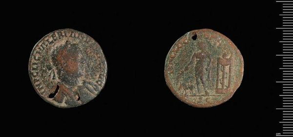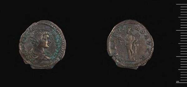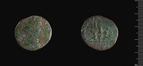 Curator: This is a sestertius of Alexander Severus, a Roman coin, bearing his portrait. It's striking how even a small object like this speaks volumes about power. Editor: I'm immediately drawn to the figure on the reverse—who is that, and what's the story there? Curator: That would be Spes, the Roman goddess of Hope, often depicted with a flower, connecting Alexander to ideas of prosperity and optimism for the future. Editor: It’s fascinating how the image of Spes was used to bolster public sentiment, offering reassurance, especially during times of uncertainty or political strife. What a clever use of imagery. Curator: Indeed. Coins were powerful propaganda tools, circulating the emperor’s image and desired message throughout the empire. They offer insight into the priorities of the Roman state. Editor: Looking at it now, I see the coin as not just currency, but a pocket-sized piece of political messaging, subtly shaping perceptions. Curator: Exactly! By looking at this small object, we can better understand how the Roman state worked to communicate with its people.