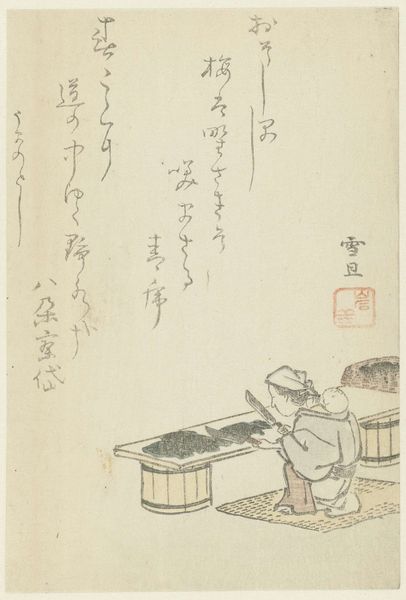 This woodblock print shows us the God of Long-Life Writing and was made by an anonymous artist. Here, we see not just an immortal being, but the embodiment of cultural values around longevity, wisdom, and the written word. In a society where age is often revered, this image taps into deep-seated desires for a long and prosperous life. The God's act of writing is itself a potent symbol. Writing in many cultures is an act of creation and preservation; connecting the divine with the earthly. Note the God’s elongated head, a visual marker of wisdom and age. The setting is a simple desk, emphasizing that knowledge and creativity are accessible. While the artist remains anonymous, the work speaks volumes about the values of its time and how art can shape our cultural ideals. It reminds us that art is a cultural mirror, reflecting back our aspirations, fears, and beliefs.