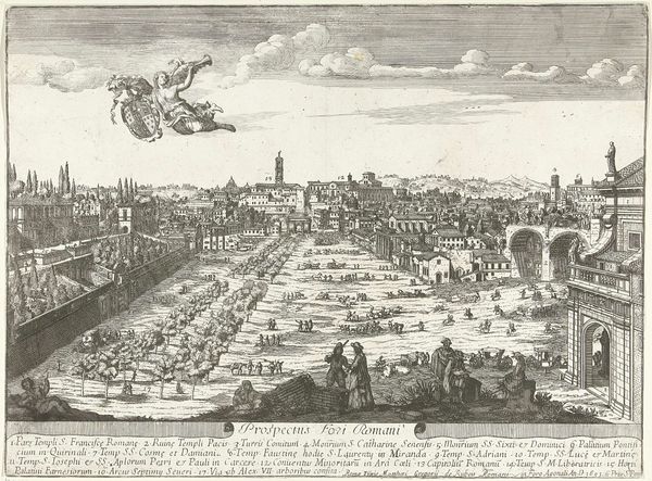 Stefano della Bella created this print titled "Pont Neuf te Parijs", which depicts the Pont Neuf bridge in Paris. Crafted during a period of significant social stratification, this work provides a glimpse into the diverse tapestry of 17th-century Parisian life. From the nobility in their horse-drawn carriages to the commoners on foot, the print captures the nuances of class and identity within the city. The clothing of the people, the activities they are engaged in, and their interactions all tell stories of their status and roles in society. Notice the detailed rendering of the architectural elements and the bustling figures, offering a sense of the vibrant street life. This is not just a depiction of a bridge, but a portrayal of a society. The original owner of this print may have felt a connection to the image as a reflection of their city. Consider how this artwork shapes our understanding of social dynamics during this period, while reminding us of the human stories embedded within the broader historical narrative.