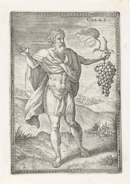 Curator: Here we have Cornelis Cort's engraving, "Gods of the Fields: Vertumnus." It's from the late 16th century and depicts the Roman god of seasons and gardens. Editor: My first thought? An unfinished symphony. All that detail, but it feels like a dream fading at the edges. He's beautiful but ephemeral. Curator: That's an interesting take. I see the engraving technique as highlighting the labor—the sheer number of lines to render every leaf, every muscle. The process is part of the meaning. Editor: Yes, the making is evident, but think of Vertumnus himself! A god of change, holding that overflowing pot—abundance tempered with the knowledge of its passing. Curator: It is a reminder of the cyclical nature of life, and I think it speaks to the continuous labor needed in agricultural societies. Editor: In the end, it's a poignant reminder to embrace the present and to be mindful of the work required to nurture beauty, both inner and outer.