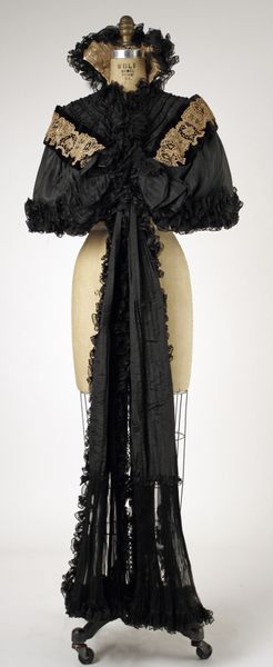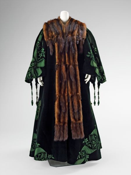 This coat was designed by the House of Worth, a fashion house with its roots in the late 1850s. Notice the rose motif running down the front and around the sleeves. Roses, universally emblems of love and beauty, also carry a potent, darker symbolism deeply embedded in our collective consciousness. Consider the rose in the myth of Cupid and Psyche, where it symbolizes love's trials and tribulations. Or the War of the Roses, where it signifies a bloody and divisive struggle for power. This duality of the rose transcends time, and it resurfaces in various forms—from the delicate blooms in Botticelli's "Primavera" to the wilting roses in vanitas paintings, reminding us of life's fleeting nature. In this coat, the House of Worth has woven together these threads, creating a garment that is not merely an aesthetic object, but a repository of historical and emotional meaning. It is a testament to the enduring power of symbols and their ability to resonate with us on a primal level, evoking both pleasure and pain, hope and despair.