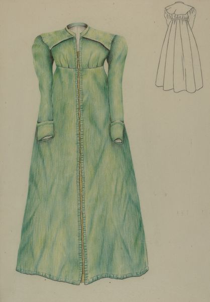 Elizabeth Moutal made this drawing of a Woman's Costume, we don't know when, but it looks like watercolour on paper. What really grabs me is the subtle palette – a beautiful sepia tone that feels both historical and timeless. The costume itself is rendered with such delicate detail, you can almost feel the texture of the fabric. Moutal's application of watercolour is so thin and transparent, yet she manages to create a sense of depth and volume. Look at the way the light catches the folds of the skirt, it's so softly done. Next to the detailed costume is a more sparse line drawing. It has a totally different feel. Moutal's work reminds me of Agnes Martin, in the sense of quiet observation. Like Martin, she transforms everyday images into something meaningful. I love how Moutal embraces ambiguity, inviting us to bring our own experiences to the piece.