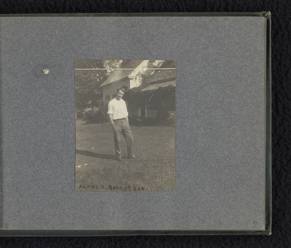 This photograph of a woman with a child and two people with skis was taken in Germany or Austria around 1931-1932. The photograph is glued into what looks like a photo album. Looking at this small black and white image, it's the texture that grabs me first. The subtle graininess gives the scene a timeless, almost dreamlike quality, don't you think? It reminds me how the simple act of capturing a moment can transform into something so much more. The edges of the photograph and the mounting evoke thoughts about time and memory. There’s a whole world implied in that little rectangle, isn’t there? This reminds me a little of Gerhard Richter's blurred photographs, where the everyday becomes extraordinary through a kind of hazy, almost melancholic lens. Ultimately, it's the openness, the ambiguity, that makes this photograph so compelling.