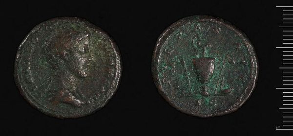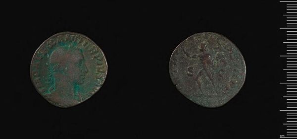 Curator: Here we have a sestertius of Julia Mamaea, residing at the Harvard Art Museums. The coin itself weighs just over 18 grams. Editor: The patina immediately draws the eye – that distinctive verdigris speaks of centuries buried, a hidden narrative etched onto its surface. Curator: Indeed. Roman coinage served as potent propaganda. Julia Mamaea, mother of Emperor Severus Alexander, wielded considerable influence. These coins would have circulated throughout the Empire. Editor: The portrait is fascinating – the severe hairstyle, the determined profile. What was she communicating through this image? A message of strength? Of piety? Curator: Probably both. A ruler's image was carefully constructed to project legitimacy and project specific virtues. The coin would have been a tangible symbol of Roman power and imperial ideology. Editor: It is a potent reminder that symbols persist, long after the political realities shift. A frozen image capturing a moment of power and influence. Curator: A reminder that even something small can tell a grand story about society and power.