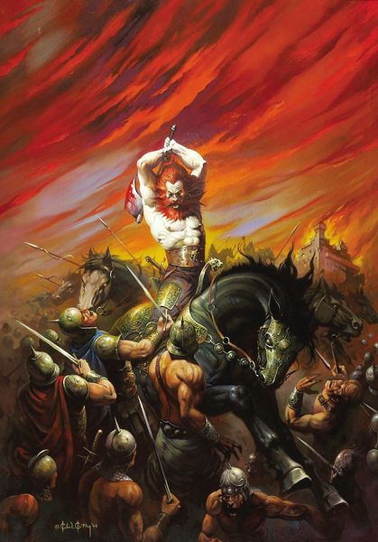 Boris Vallejo painted ‘The Valkyries’ with oils, and the piece is just radiating energy! It's like a bolt of lightning striking the canvas. Looking at the surface, you can almost smell the turpentine and feel the brushstrokes. The paint’s applied so smoothly it’s almost like he was caressing the canvas. I love the way Vallejo builds up the drama with light and shadow – the Valkyries look like they're glowing from within. Notice how the bodies and horses are rendered with such detail, while the background melts into an almost abstract haze. The mouths of the horses are literally spitting light, which seems so heavy-metal, so visceral. It reminds me of some of the fantastical imagery of Frank Frazetta. Like Frazetta, Vallejo isn’t afraid to embrace the weird and the wild, pushing the boundaries of what art can be. It’s a reminder that art can be a playground of the imagination, where anything is possible and beauty can be found in the most unexpected places.