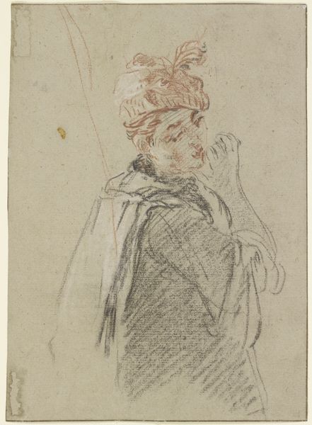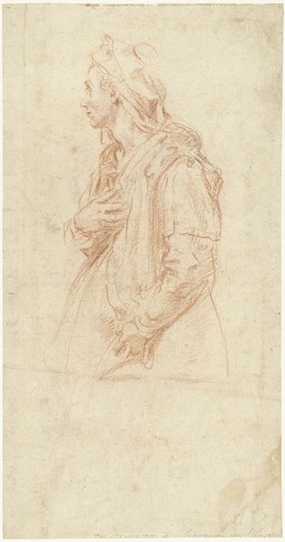 Stefano della Bella created this drawing of 'A Bearded Man in a Cloak and Turban Facing Right' using pen and brown ink. The small scale compels a close viewing, drawing us into the intricate network of lines that define the figure. The sketch is dominated by the curving contours of the cloak and turban, which contrast with the angularity of the man's face. The lines are not merely descriptive; they seem to probe the essence of form itself. Observe how Bella uses hatching to suggest volume and shadow. The unfinished nature of the sketch is important, challenging the idea of a complete or definitive representation. In its structural incompleteness, the sketch invites us to consider the process of image-making. It prompts us to question what it means to represent the human form and its cultural connotations, in early modern Europe.