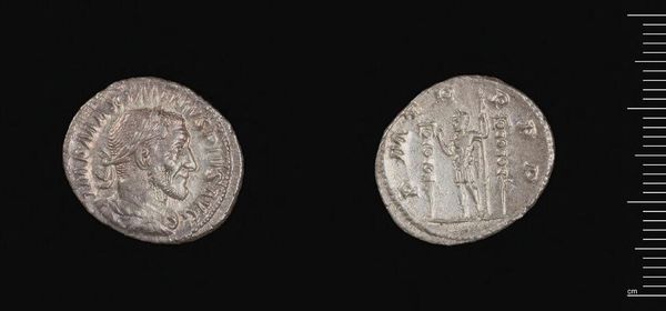 Curator: This is a Denarius of Julia Maesa, created under the authority of Elagabalus. It's a small but potent artifact from the Roman Empire. Editor: Wow, this coin feels like a little portal back in time. It's aged, but the detail still holds up. Curator: Indeed. It offers a glimpse into the power dynamics and imperial image-making of the era, especially concerning women in positions of influence. Julia Maesa was, after all, instrumental in placing her grandsons on the throne. Editor: I can see that in her stern, almost unforgiving, portrait. The other side seems to show a goddess? Maybe a symbol of propaganda? Curator: Precisely. The reverse likely depicts a deity associated with abundance or victory, reinforcing the emperor’s claim to power and divine favor. These coins were so much more than currency; they were instruments of political messaging. Editor: So much history packed into this tiny metal canvas! Makes me wonder what it bought, what hands it passed through. What it witnessed. Curator: Exactly. By studying it, we can trace power, gender, and cultural narratives through the ages. Editor: I’m leaving here with a renewed sense of connection to something so far removed, yet so incredibly close.