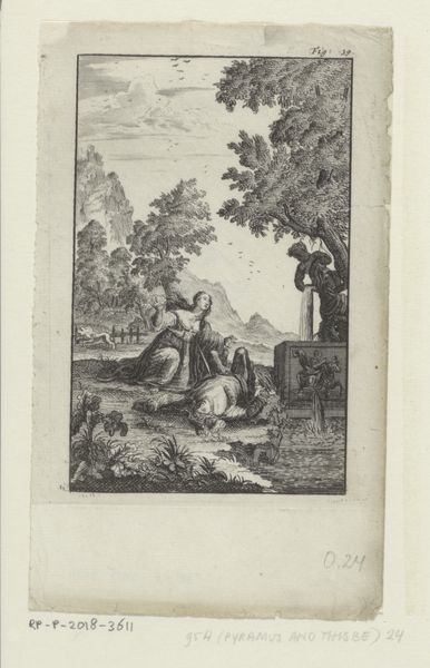 Editor: Here we have Jan van Vianen's "Vrouw en twee mannen bij een molen" from 1686, an engraving currently held at the Rijksmuseum. I'm struck by the sort of everyday, almost mundane scene, despite the slightly heightened style. How do you interpret this work, especially given its time? Curator: This piece, ostensibly a genre scene, operates on multiple levels. Let’s consider the prominent windmill. While seemingly a common sight in 17th-century Netherlands, the windmill held strong symbolic weight, representing industry and prosperity, yes, but also national identity and resistance against Spanish oppression. How might these factors shape your reading of this image? Editor: I hadn't thought about the national identity aspect so directly. It felt like just background! So, the people… Curator: Exactly! Look closely. You see three figures: woman and two men working collectively, processing materials around a wooden tub. How might gender roles and power dynamics be represented here? Who benefits from whose labour, and whose story isn't being told? Is this moment of hard, shared labor, truly shared, in its benefits and representation? Editor: That's a lot to consider. I suppose I was seeing just a simple scene, not all the underlying tensions and potential commentary. It almost feels… loaded, now. Curator: Indeed. Engaging with the social and historical context can illuminate how seemingly simple images participated in larger conversations about labour, identity, and even resistance. Consider this piece not just as a visual record, but as an argument about societal power structures during the Baroque era. Editor: It’s amazing how much more there is when you start looking at it that way. Thanks, that’s really opened my eyes! Curator: My pleasure. Hopefully, you can now help others appreciate art in deeper, more meaningful ways.