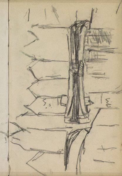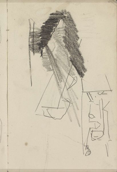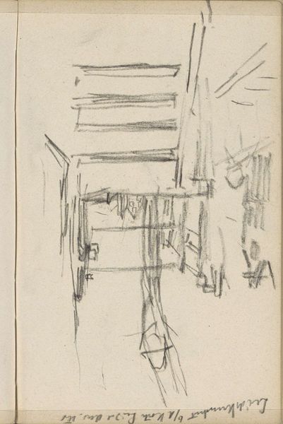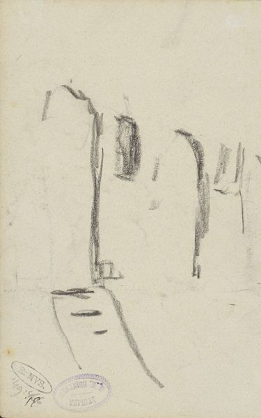 George Hendrik Breitner created this drawing, “Gezicht op gebouwen in Amsterdam, mogelijk bij het Oosterpark”, with black chalk. The composition, dominated by stark contrasts and a sense of incompleteness, offers a glimpse into the artist’s observational process. Breitner’s drawing reflects a modern sensibility through its raw, unpolished aesthetic. The sketch destabilizes traditional artistic values by emphasizing process over product, aligning with the broader philosophical shift towards valuing subjective experience. Lines intersect and overlap, creating a semiotic system where each mark functions as a signifier of form and space. This challenges our perception, inviting us to construct our own interpretation of the urban landscape. Note the overall feeling of transience and fragmentation created by the artist’s expressive marks. This is a deliberate aesthetic choice which functions as part of a larger discourse on modernity and the changing experience of urban life.