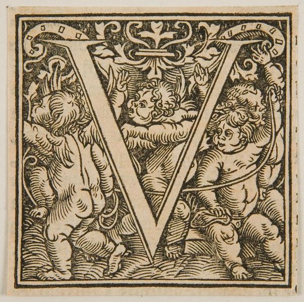 Curator: Here we have an anonymous piece, "Letter D with Nativity," housed at the Harvard Art Museums. Editor: It’s a dense composition, isn’t it? The sharp contrast of the linework definitely creates a somber, almost austere mood. Curator: Right, the visual language speaks to a fascinating moment in print history. The Nativity scene is framed by the letter "D," which offers a glimpse into the role of religious imagery in literacy and social structures. Editor: The composition, though small, draws the eye across the surface. The artist masterfully uses varied line weights to create depth. Curator: Indeed, and the inclusion of religious iconography speaks volumes about the socio-political context of the period, reflecting societal values and religious power dynamics. Editor: I see how the image functions as a microcosm of artistic technique, devotional expression, and cultural ideology. Curator: Absolutely, a powerful encapsulation. Editor: A convergence of form and meaning.