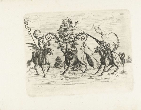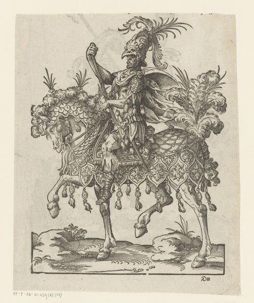 This engraving by Jost Amman depicts a man dressed as Apollo, the Greco-Roman god of light, prophecy, and the arts. Here, Apollo rides a horse, both adorned with solar symbols, emphasizing his connection to the sun and enlightenment. The radiant crown of solar rays around Apollo’s head immediately strikes one as an emblem of divinity. We see variations of this motif across cultures—from the halo in Christian iconography, symbolizing divine grace, to the sun disks of ancient Egyptian deities. These symbols are not mere representations but powerful visual carriers of spiritual and intellectual illumination. There's a psychological depth to how light, embodied by Apollo, affects us. Light has always been associated with knowledge and clarity, casting away shadows of ignorance and fear. The recurring motif of solar deities and their radiant attributes serve as a beacon across epochs, their emotional resonance engaging us on a subconscious level, promising enlightenment and hope. The symbol of Apollo on horseback reflects a cyclical progression, resurfacing in new forms, each time adapted, yet fundamentally unchanged in its core message of enlightenment and progress.