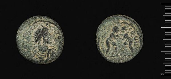 Editor: This artifact is a coin from Byblos under Diadumenian, now at the Harvard Art Museums. Seeing the wear and its small size, I wonder about its value in society at the time. What can you tell me about this piece? Curator: This coin speaks volumes about the Roman Empire's influence and its economic structure in Byblos. Consider how this small object connected individuals to broader networks of power and trade. Who benefited from its circulation? Editor: So, it’s more than just money; it’s about power and who controlled it? Curator: Precisely! It’s a symbol of Roman authority but also reflects Byblos's integration into the Empire. It makes me wonder, how did local populations perceive these symbols? Editor: That puts it into perspective. I’ll never look at a coin the same way again. Curator: Indeed, every artifact carries a historical narrative within it.