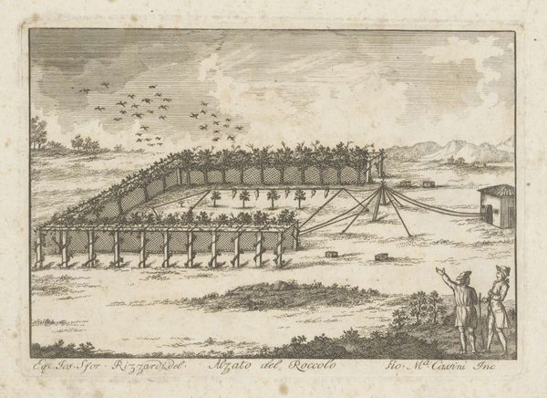 This print, "Ruin of Canopus and Port of Alexandria," was made by Reinier Vinkeles. The image is the result of a labor-intensive and highly skilled intaglio process, where lines are incised into a metal plate, likely copper, with a tool called a burin. Ink is then forced into these grooves, and the plate is pressed onto paper. The method allows for incredible detail, and precise control over light and shadow, as we see in the depiction of architectural ruins and a distant harbor. But more than just a picture, it's a document of a specific moment in time, when European artists were fascinated by classical antiquity, yet also implicated in colonial projects across the globe. The print is not just a picturesque view, but evidence of a wider system of power, trade, and knowledge production. It reminds us that even seemingly straightforward images are the products of complex social and historical forces.