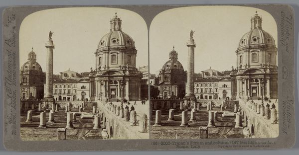 This is a stereo card of Trajan's Column in Rome, created by Ernest Eléonor Pierre Lamy, sometime in the late 19th century. The card would have been viewed through a special viewer, creating a vivid three-dimensional impression. But let's consider the material and process of this image. A stereo card like this depended on the mass production of photography, and a burgeoning tourist industry. It was a relatively affordable way for people to experience the world from the comfort of their homes. This suggests a democratization of culture, even if the experience was mediated through a lens of commercial exchange. The image itself captures a monument of power, the Column, now standing amid ruins. This interplay of past and present, grandeur and decay, reflects shifting social dynamics, as new industries and cultural forms overtook older ones. It reminds us that even the most imposing structures are subject to time and to changing economic and social realities.