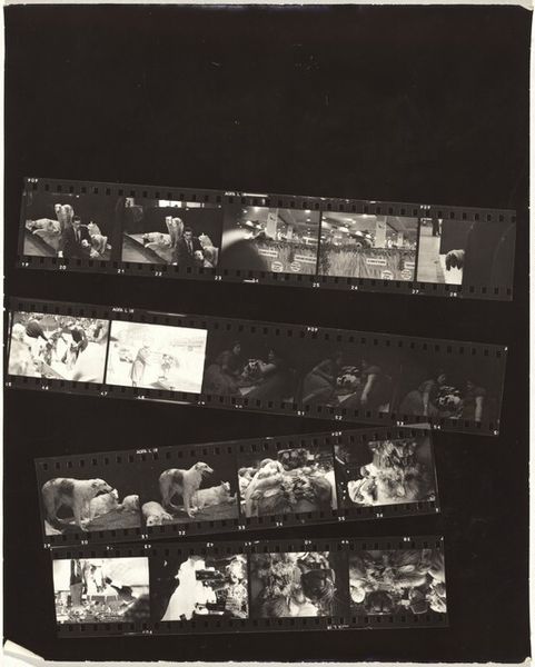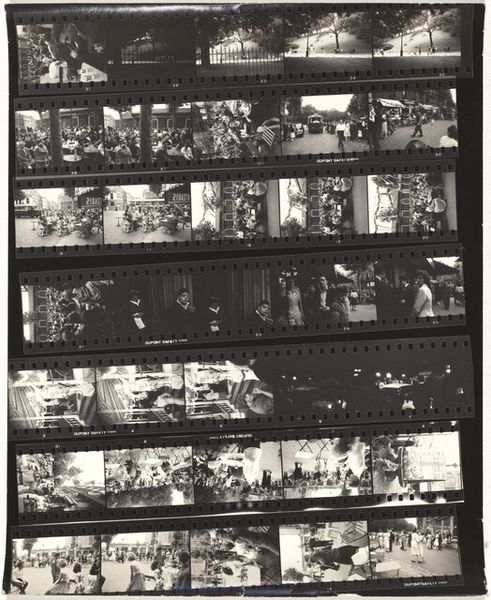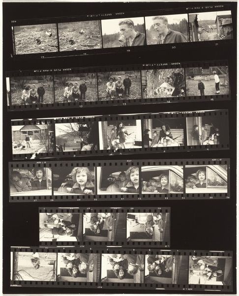 Robert Frank made this contact sheet, called Embarkation 7, by exposing photographic paper to strips of processed 35mm film. It's all process here, a way of showing the before and after, the takes and outtakes. The surface is matte, kind of work-a-day, just the evidence of a process. There's no attempt to hide anything, or pretty it up. Looking at the red registration marks at the top, you get a sense of how Frank might have worked, selecting and discarding images as he went. The pictures themselves are pretty blurry, and more about mood than detail. It's like a memory, more felt than seen. Frank's whole thing was about capturing the raw, unvarnished truth of American life, and this contact sheet is like a behind-the-scenes look at how he did it. The same way someone like Garry Winogrand might shoot reels of film, just walking around, responding to things, and letting the process lead him. For both, it was about embracing ambiguity and letting the work be open to interpretation.