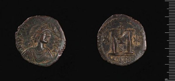 Editor: Here we have a Copper Assarion by Andronikos II, currently held at the Harvard Art Museums. Seeing it displayed like this makes me consider how such a small object can carry so much weight and historical context. How do you interpret this coin? Curator: It represents the power structures of the Byzantine Empire, but more importantly, it reflects the daily lives and economic realities of ordinary people under Andronikos II's rule. What does it mean to hold the symbol of power in the palm of your hand? Editor: I guess it makes the power feel more tangible, less abstract? Curator: Exactly! Currency is a social contract, a shared belief system. And this coin reminds us that even the smallest objects can be powerful agents of cultural and political meaning. Editor: That's definitely a new perspective for me, thank you. Curator: My pleasure. It's about understanding how even everyday objects participate in the grand narratives of history.
