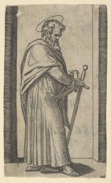 This engraving of Apostle Thomas was crafted by Christoffel van Sichem II. Observe Thomas holding a cross, a symbol laden with meaning. The cross signifies not just the crucifixion of Christ, but redemption and faith. The halo signifies holiness. Thomas, known for his initial doubt about the Resurrection, embodies the human struggle between faith and reason. His story, deeply embedded in Christian theology, illustrates the acceptance of divine truth through tangible proof. Consider the evolution of the cross symbol: from ancient solar symbols of life and continuity to the Christian emblem of sacrifice. This transformation reveals how symbols evolve, carrying forward collective memories and adapting to new cultural landscapes. The emotional power of the cross lies in its duality—pain and salvation—engaging viewers on a subconscious level. It is a potent reminder of mortality and the promise of spiritual transcendence, a cycle of death and rebirth that resonates across cultures.