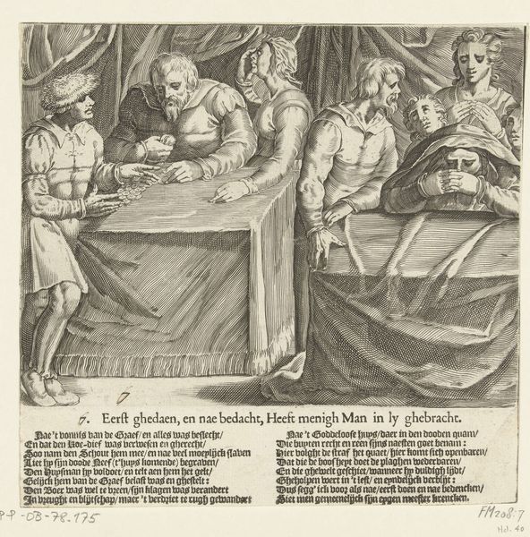Cornelis Galle I created this engraving of ‘De heilige Norbertus, opgebaard in Maagdenburg’—Saint Norbert, Lying in State in Magdeburg—sometime before his death in 1650. The composition unfolds in layers of the earthly and the divine. Notice how the rigid lines of the architecture contrast with the ethereal clouds above. The scene presents the deceased Saint Norbert surrounded by mourners, his body displayed with emblems of his ecclesiastical power. Above, angels carry his soul towards a divine light. This division between the earthly and heavenly realms is structurally reinforced by the symmetrical arrangement of figures and objects around the horizontal body of the Saint. Through Galle’s engraving technique, we can see a discourse on the nature of death and sainthood. The rigid, controlled lines used to depict the earthly figures contrast with the more fluid, dynamic lines of the celestial beings, suggesting a transition from corporeal existence to spiritual transcendence. The artwork thus functions as a semiotic structure. It uses visual symbols to communicate complex theological concepts. It is an invitation to contemplate the boundaries between life and death, the sacred and the profane.