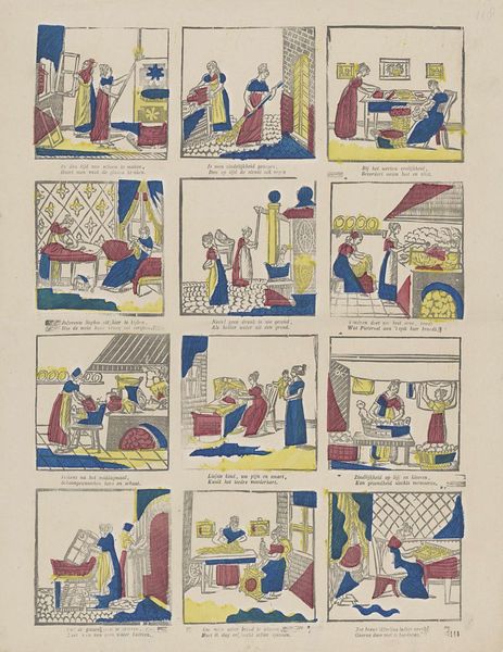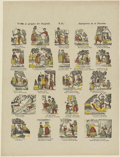 This hand-colored print was made by Brepols & Dierckx zoon, sometime in the 19th century. The print presents a series of small vignettes, each illustrating a simple scene of daily life, accompanied by moralizing texts in both Dutch and French. Prints like these were often produced in the Netherlands and Belgium for educational purposes, offering children a reward for learning their lessons. As such, we can look at this work as a glimpse into the values and expectations placed on children during this period. Notice how labor and leisure, family and community are all presented, shaping a child’s understanding of their place in society. The inclusion of both Dutch and French text also speaks to the complex cultural and linguistic landscape of Belgium at the time. As historians, we can use sources like these to understand the social and cultural norms that were being promoted and the ways in which children were being socialized into particular roles and responsibilities. By looking at prints, books and other educational materials we can gain a deeper insight into the lives of children in the past.