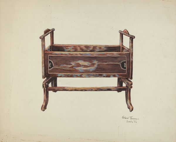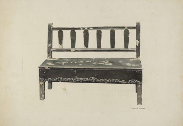 Annie B. Johnston rendered this watercolor drawing of a school seat. The school bench carries deep connotations as a vessel of education and communal learning. Think of the great halls of antiquity, where philosophers imparted wisdom seated on simple benches. Consider how the motif has reappeared through illuminated manuscripts, frescoes, and now here. The act of sitting together suggests a collective striving towards knowledge. Note the notches at the base of the bench’s legs; they hint at the utilitarian origins of the seat. These sturdy, unadorned planks are in stark contrast to the highly ornamented thrones of rulers and gods. Yet, the school bench shares an underlying similarity: it is a seat of power, where young minds are molded. The subconscious symbolism may evoke both comfort and anxiety, a potent reminder of formative years. The school bench becomes a stage for the drama of learning, a stage where we perform the rituals of absorbing knowledge. It will continue to evolve as pedagogy and society transform, yet it will remain a powerful anchor to our shared past.